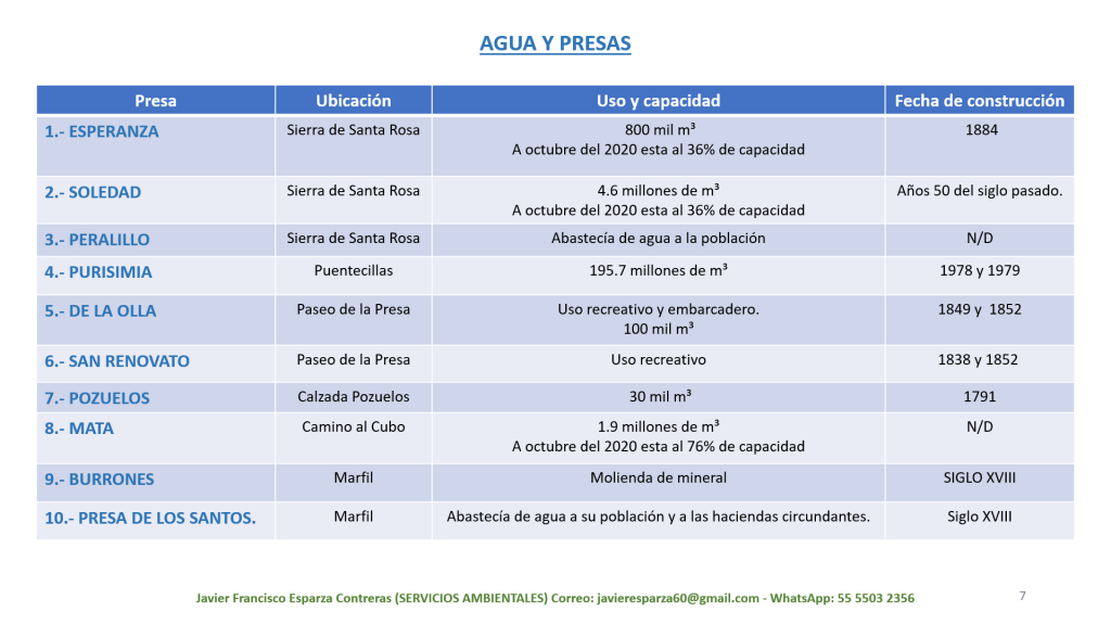 Las presas La Esperanza, La Soledad y Burrones surtirán de agua en cascada a La Tranquilidad, donde tenemos el sistema de vetas La Luz desde hace 400 años y hay minas abandonadas que drenan agua con arsénico. En 2014, de acuerdo a un estudio de la UG, esta alertó al sistema municipal de aguas sobre los riegos de recibir agua con arsénico y planteó tratar el líquido desde las minas, crear un arroyo depurador, hacer estudios más profundos y elaborar una estrategia hidráulica.